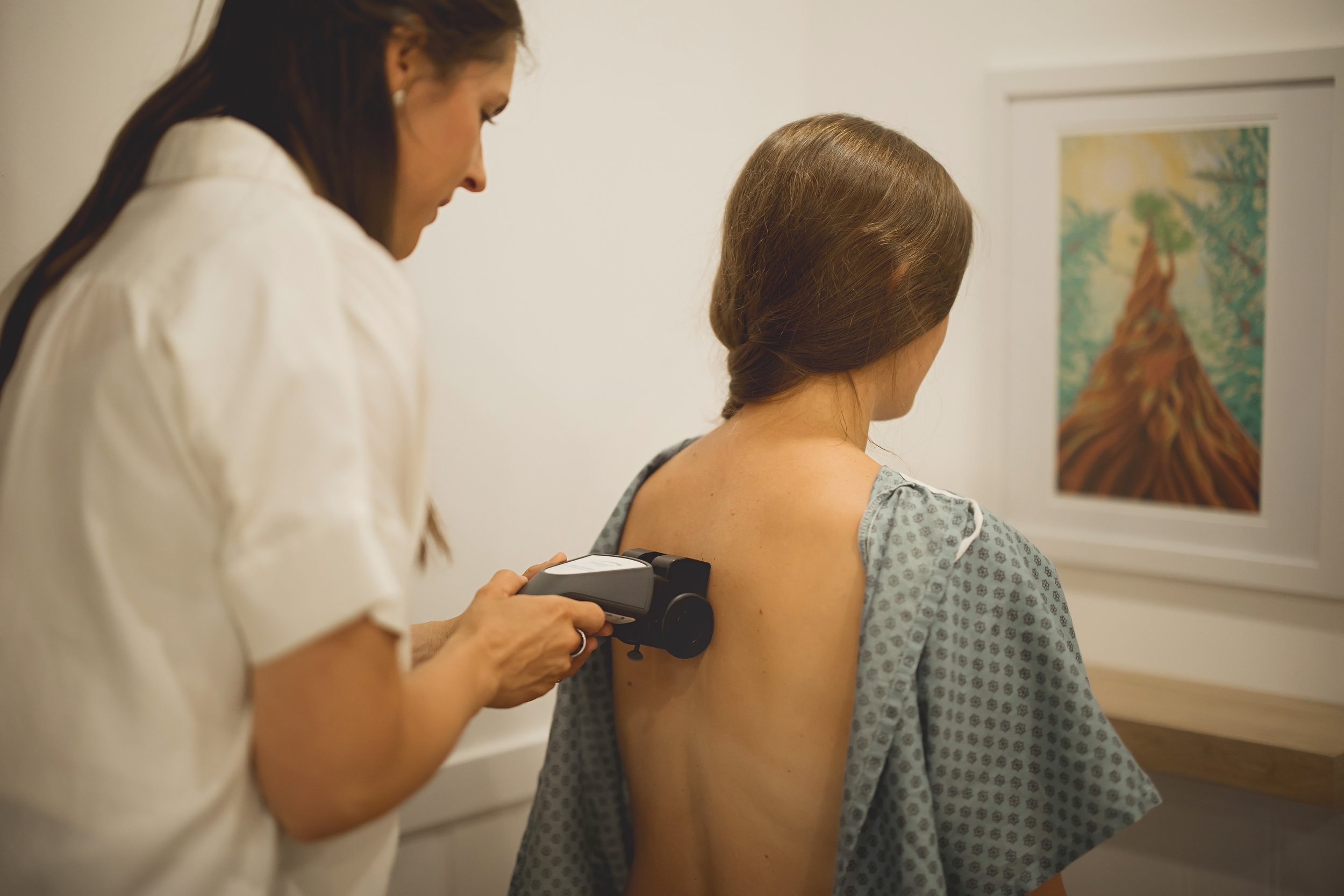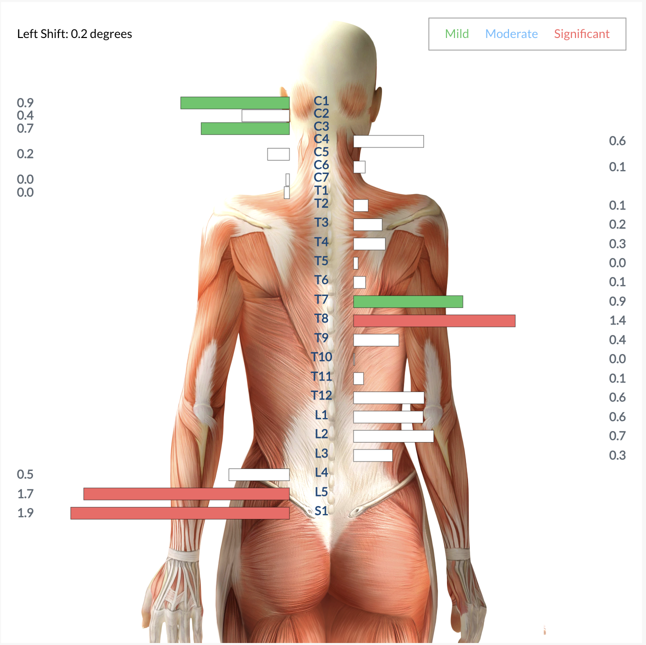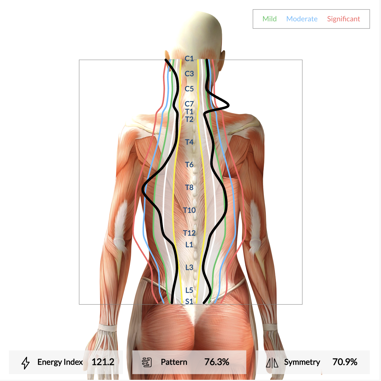 This scan measures the electrical activity of the muscles along the spine, revealing tension patterns that indicate where the nervous system is holding onto stress. Tight, overactivated muscles along the spine are a sign of a nervous system stuck in a state of tension or high alert.